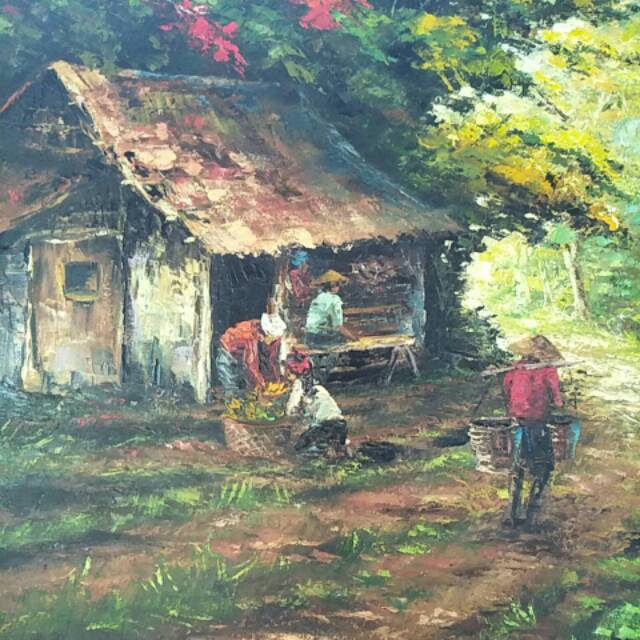 Lukisan pemandangan alam kampung pedesaan cocok untuk memperindah rumah atau kantor anda.